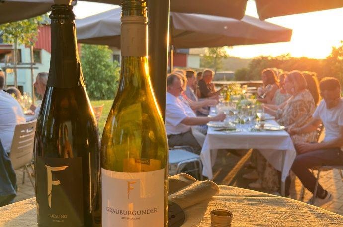 Auf den tiefgründigen, kalkgeprägten Böden befasse ich mich mit Riesling, den klassischen Burgundertrauben und feinen Bukettrebsorten und erzeuge Weine, die ihre Böden und ihre Landschaft erzählen. Strahlend klar, präzise und charaktervoll — Weine, die nicht laut sein müssen, um Eindruck zu hinterlassen.