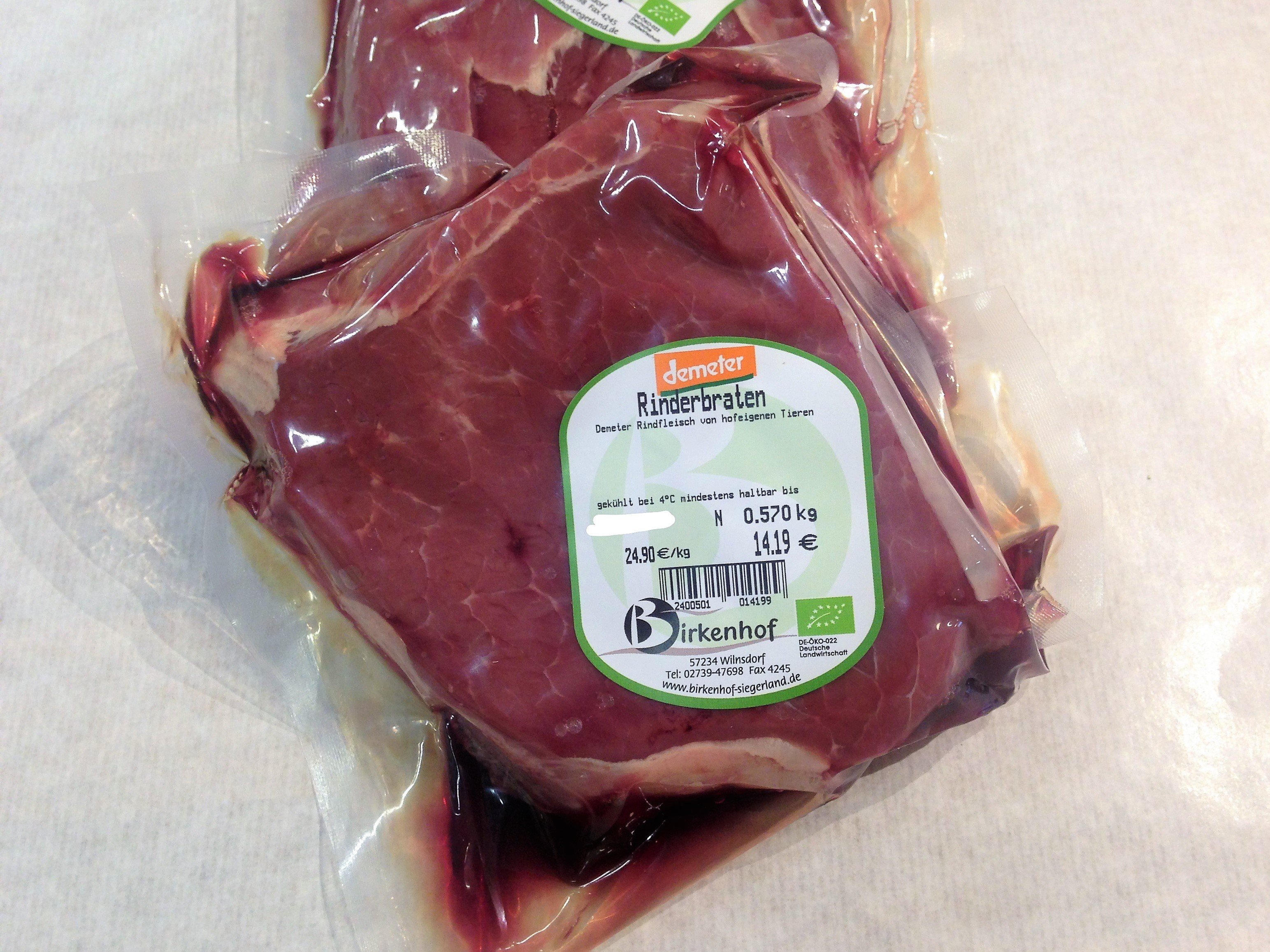 Wenn möglich liefern wir unser Rindfleisch frisch. Ansonsten liefern wir Tiefkühl Ware. Wir liefern unser Fleisch eingeschweißt in Folie. Ein Stück wiegt ca. 500 - 600 g und wird nach tatsächlichem Gewicht abgerechnet.