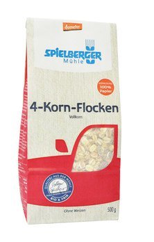 Die 4-Korn-Flocken werden aus Hafer-, Dinkel- , Gerste- und Roggenflockenn gemischt.