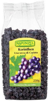 Korinthen sind kleine, blaue-violette, süß-aromatische Trauben. Sie werden an der Sonne getrocknet und bieten einen süß-aromatischen, fruchtigen und leicht herben Genuss. Ihr Name stammt von der griechischen Hafenstadt Korinth, in deren Gegend sie bevorzugt angebaut werden.