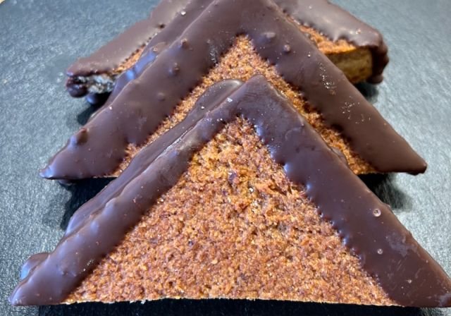 Nussmasse (*Nüsse, * Butter, *Zucker, *Wasser, Salz, **Vanille), Zartbitter Kuvertüre* (Kakaomasse*, Rohrohrzucker*, Kakaobutter*, Kakao: 70% mind.)