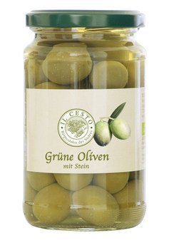 Oliven grün*, Wasser, Meersalz, Zitronensaft*
