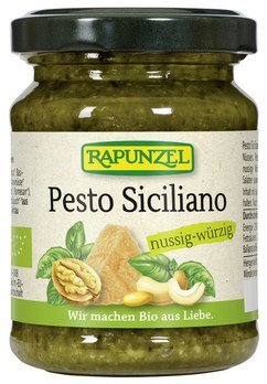 Fein-aromatisches Pesto aus frischem Basilikum, besonders vielen handverlesenen Nüssen, Olivenöl nativ extra und würzigem Pecorino Toscano g.U., Pecorino Sardo g.U. und Parmigiano Reggiano g.U. In einem Familienbetrieb in Italien nach original Rezeptur liebevoll zubereitet.