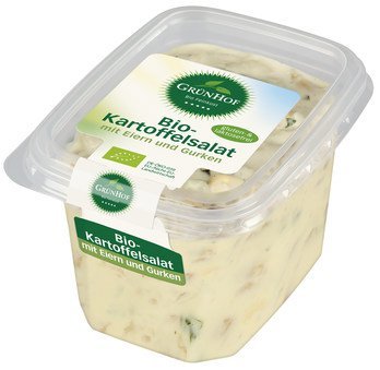 Kartoffeln* 65 %, Rapsöl*, Wasser, Gurken* 6 %, Rübenzucker*, Branntweinessig*,