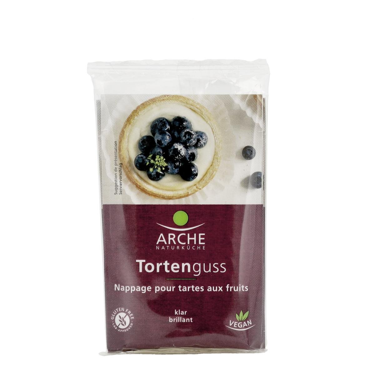 Einer für alles! Mit rotem Saft, klarem Saft oder Wasser zubereitet könnten Sie die Farbe Ihres Tortengusses frei wählen. Arche Bio Tortenguss ist vegan, glutenfrei und hat genau die richtige Menge für einen Obstboden. Sie brauchen nur ein wenig Geduld - das pflanzliche Geliermittel Agar Agar geliert nach dem Aufkochen, wenn es auf ca. 35°C abkühlt.