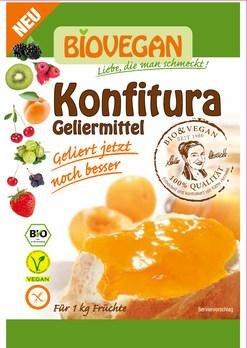 Konfitura erstes BIO zertifiziertes und zuckerfreies Geliermittel, bestehend aus verschiedenen Stärken und Geliermittel, zur Zubereitung von Fruchtaufstrichen ohne Zuckerzusatz! Einfach 1 kg geputztes und klein geschnittenes Obst oder 600 ml Saft mit Konfitura und Zitronensaft mind. 3 Minuten kochen, in Gläser füllen und fertig ist der selbstgemachte Fruchtaufstrich.