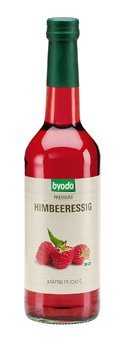 Dem Byodo Himbeeressig (5% Säure) geben reife Bio-Himbeeren den intensiv-beerigen Geschmack und die schöne, leuchtend-rote Farbe. Diese werden zu feinem Himbeerwein und Himbeerkonzentrat verarbeitet. Der Wein wird anschließend bei angenehm warmen Temperaturen langsam zu Essig vergoren. Dieses Verfahren nennt man eine kontinuierliche Essigvergärung.