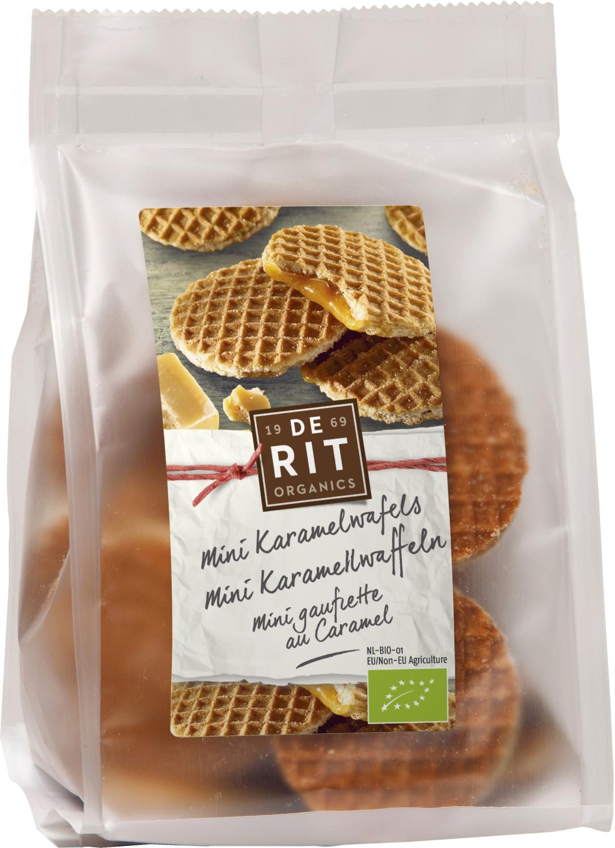 Eine köstliche Nascherei sind diese Mini-Karamellwaffeln aus dem Hause De Rit. Die Bio-Waffeln im Kleinformat verdanken ihren vollen Geschmack einer Karamellfüllung aus Weizensirup, Rohrzucker und karamellisiertem Zucker.