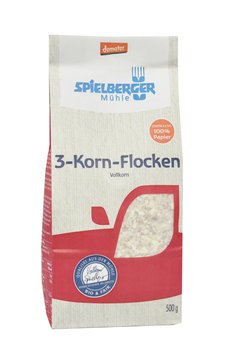 Die 3-Korn-Flocken werden Hirse-, Reis- und Buchweizenflocken gemischt.
