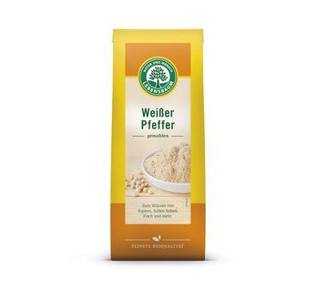 Weißer Pfeffer schmeckt aromatisch und mild scharf. Er besteht aus den hellen Kernen reifer Pfefferbeeren, die aufwändig von ihrem Fruchtfleisch befreit wurden. Runden Sie helle Soßen, Suppen, Fisch und Tofu mit weißem Pfeffer ab.