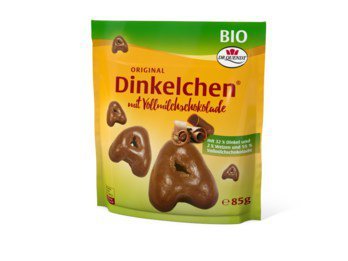Vollmilchschokolade1 (Zucker1, Kakaobutter1,2, Vollmilchpulver1, Kakaomasse1,2), Dinkelmehl1 (eine Weizenart), Zucker1, Dinkelweizenkleie (eine Weizenart)1, Weizenmehl1 2 %, stark entölter Kakao1,2, Karamellzuckersirup1,2, Hühnereieiweißpulver1, Überzugsmittel: Gummi Arabicum1; Gerstenmalzsirup1, Vanille1, Trennmittel: Magnesiumcarbonat; Gewürze1.