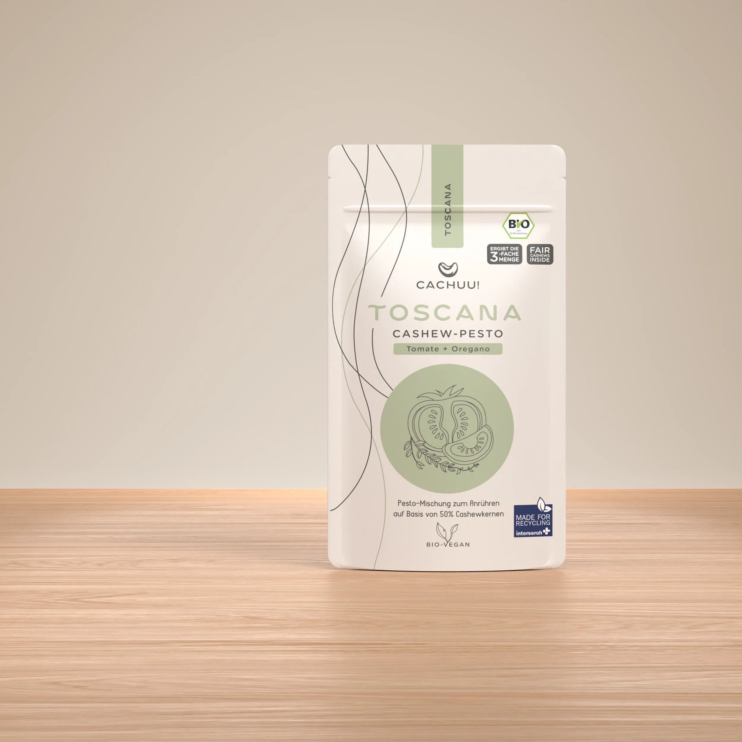 In vielen fertig angerührten Pesto im Glas ist einfaches Sonnenblumelöl, oft auch Kartoffelflocken oder sonstige Zusätze. Bei Cachuu! nicht! Du verwendest zudem das Öl deiner Wahl. So hast du ruckzuck ein Pesto, einen Dip, einen Aufstrich, eine Marinade, ein Dressing oder dein Lieblings-Topping.