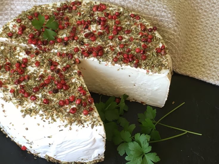 Als junger Käse mild-cremig mit feinen Ziegenmilchnuancen und einem samtigen Weißschimmel überzogen, das Topping mit Oregano und rosa Pfeffer gibt ihm eine mediterrane, leicht scharfe Note. Mit zunehmender Reife kräftiger im Geschmack.