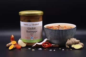 Die Bio Gockel Thaisuppe SCHARF in der praktischen 400ml-Portion ist ein köstlicher Genuss für alle Liebhaber der thailändischen Küche. Hergestellt aus hochwertigen Zutaten wie Thai Fond, Gockelfleisch, Paprika, Karotten, Bambussprossen und Shitake Pilzen, bietet diese Suppe einen einzigartigen Geschmack, der Sie in ferne asiatische Gefilde entführt. Dank der sorgfältigen Zubereitung und der Verwendung von Bruderhahnfleisch/Gockelfleisch können Sie sich auf beste Qualität verlassen.