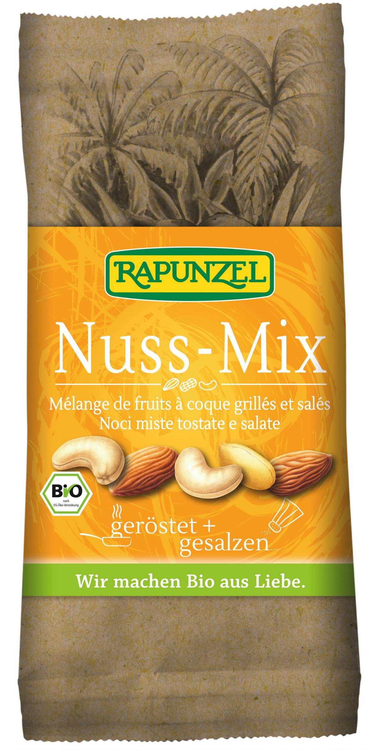 Knackiger Knabberspaß! Im Hause Rapunzel knackig geröstet, fein gesalzen und röstfrisch verpackt. Besonders schonend werden die Nüsse mit Heißluft aus überwiegend regenerativen Energien geröstet. So entfaltet sich ihr volles Aroma und sie werden herrlich knackig.