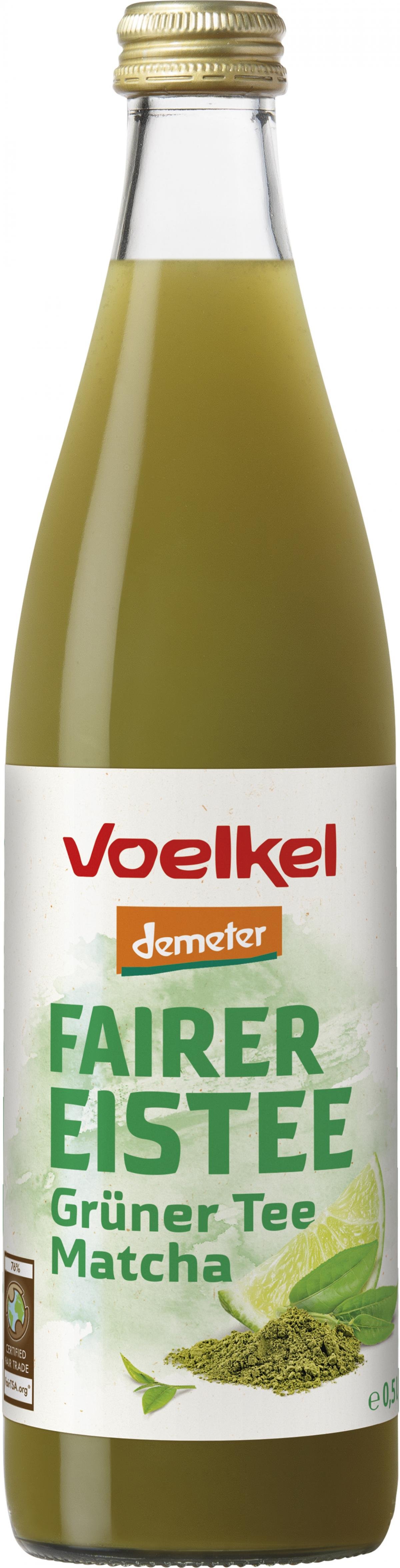 Der Faire Eistee Grüner Tee Matcha kombiniert auf erfrischende Weise fein zermahlenen Grünen Tee, das sogenannte Matcha-Pulver, mit Direktsaft aus Äpfeln, Limetten, Zitronen sowie exotisches Mangomark zu einem einzigartigen Geschmackserlebnis. Ein Genuss für Mensch und Natur, dank biologisch-dynamisch angebauter Zutaten aus fairem Handel.