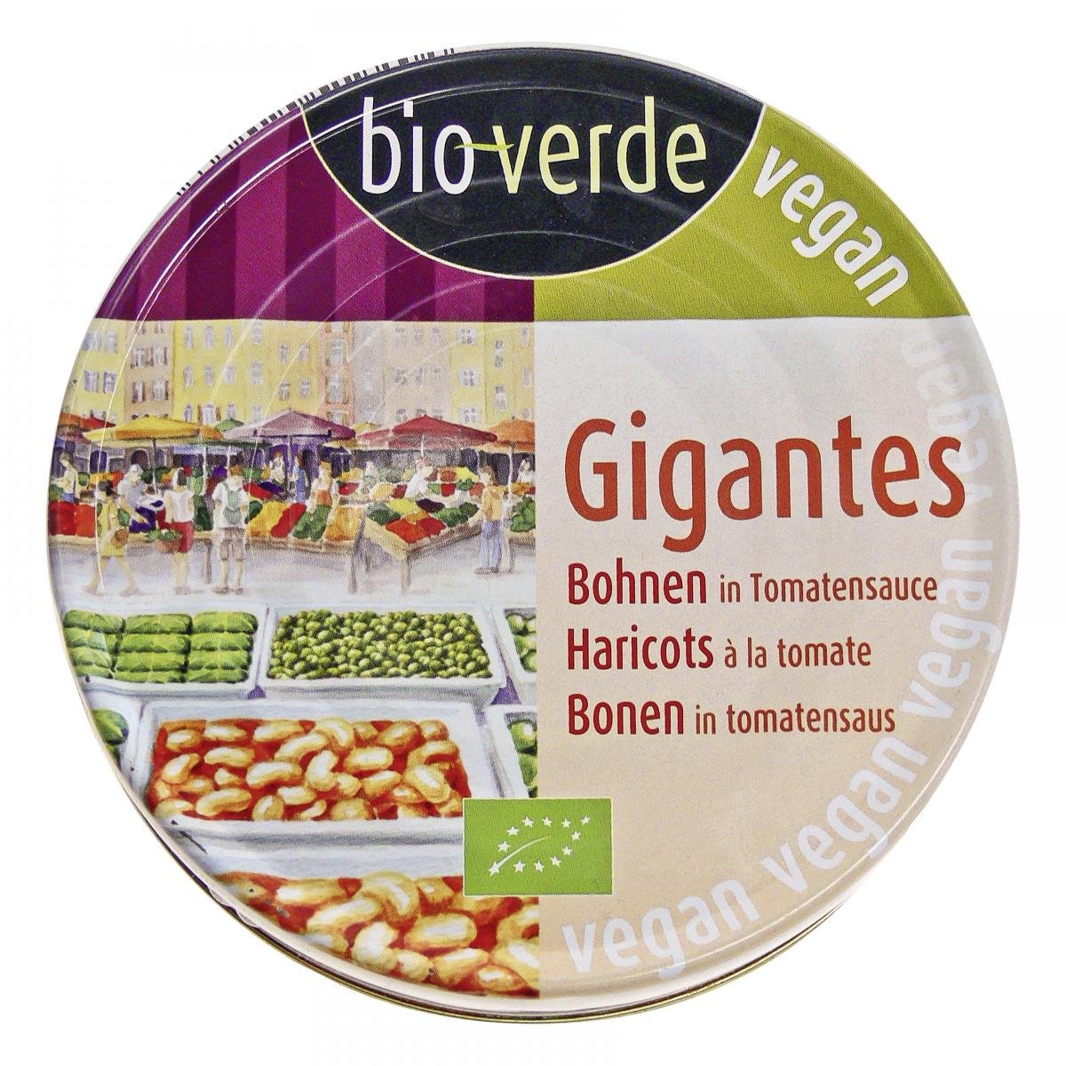 Gigantes von bio-verde sind Riesenbohnen, die in einer aromatischen Zwiebel-Tomaten-Sauce eingelegt sind. Es handelt sich dabei um eine besondere Delikatesse aus Griechenland.