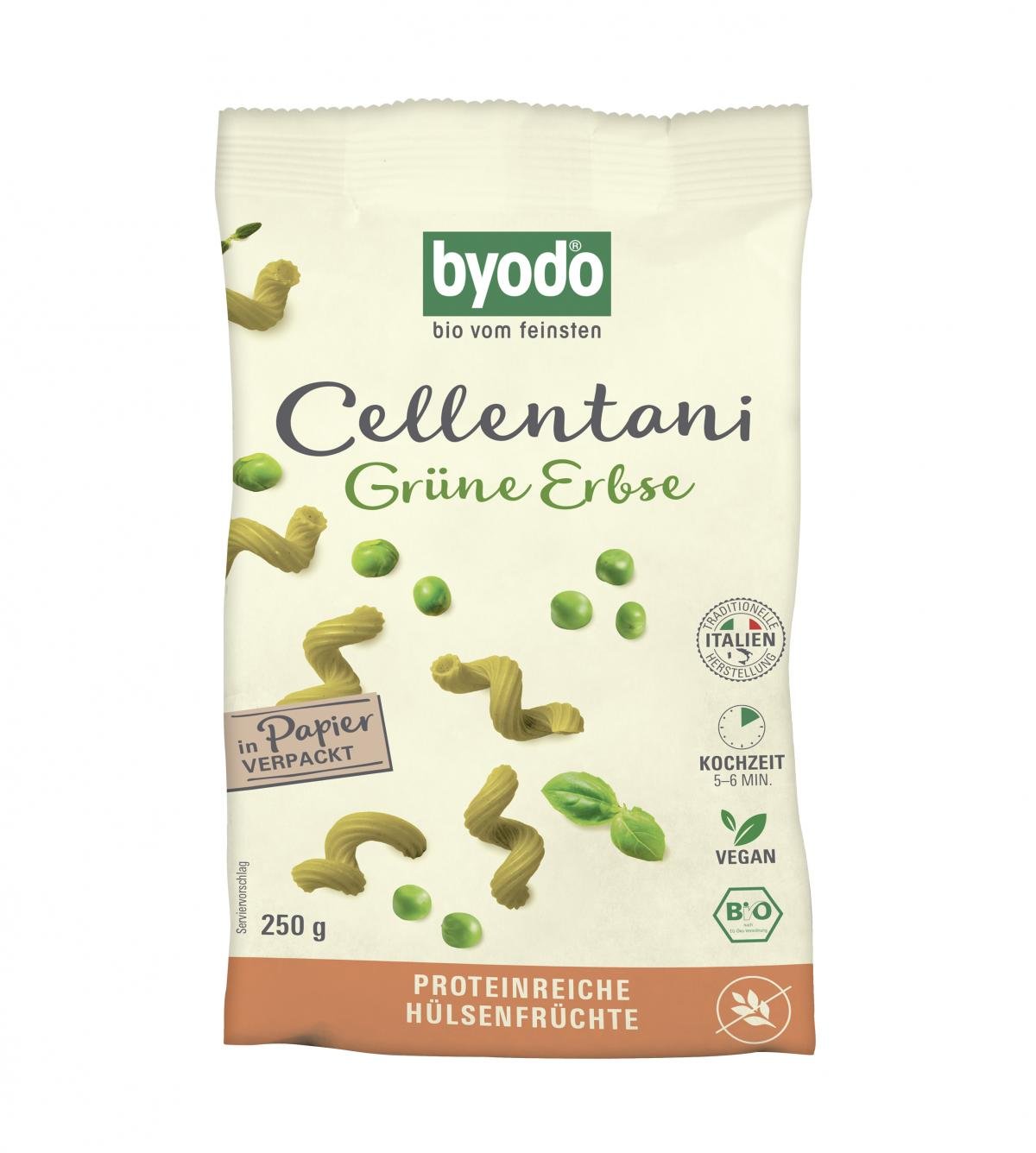 Die Byodo Cellentani Grüne Erbse aus 100% erlesenen Bio-Zutaten sind dank ihres hohen Protein- und Ballaststoff-Gehalts perfekt geeignet für eine ausgewogene oder glutenfreie Ernährung. Sie sorgen mit ihrem frischen und leicht süßlichen Geschmack für einen abwechslungsreichen Pasta-Genuss.