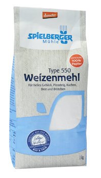 Weizenmehl Type 550 kann für alle hellen Gebäcke mit Hefe, Brötchen, Kuchen und Pizzateig verwendet werden. Es eignet sich zudem zum Binden von Saucen.