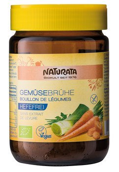 Naturata bietet mit den Gemüsebrühen hefefrei eine Alternative für alle, die Hefe nicht mögen oder aus ideellen Gründen keine zugesetzte Hefe in Lebensmitteln möchten. Auch für Hefeallergiker ist diese Brühe bestens geeignet. Gemüsebrühe hefefrei besticht durch einen feinen Geschmack nach Gemüse und Muskatnuss.