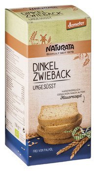 Kross, luftig, lecker: Der Dinkel-Zwieback von Naturata aus hochwertigen Bio- und Demeter-Zutaten überzeugt durch seinen zartknusprigen Biss und sein leicht nussiges Dinkel-Aroma. Die knusprig-leichte Brot-Alternative schmeckt pur, herzhaft oder süß belegt.