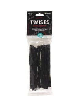 Twists sind die bekannten, gedrehten Lakritzstangen und seit Jahrzehnten ein Klassiker im Snackregal. Eine reine Lakritz-Sorte, die außer der nahrhaften schwarzen Zuckerrohrmelasse und Süßholzwurzelextrakt nur noch wenige Zutaten enthält. Das weiche Lakritz lässt sich leicht auseinanderziehen und durchbeißen. Twists enthalten keine tierischen Zutaten und statt Weizenmehl wird Reismehl verwendet. Was du isst, ist also 100% vegan und glutenfrei! Probiere auch die anderen 13 Lakritz-Sorten aus!